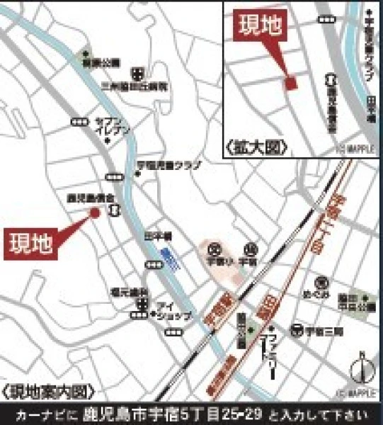 ※地図上の「対象地」は「鹿児島県鹿児島市宇宿5丁目 」付近を示しています。実際の場所ではない場合がございます。詳しくはお問い合わせください。